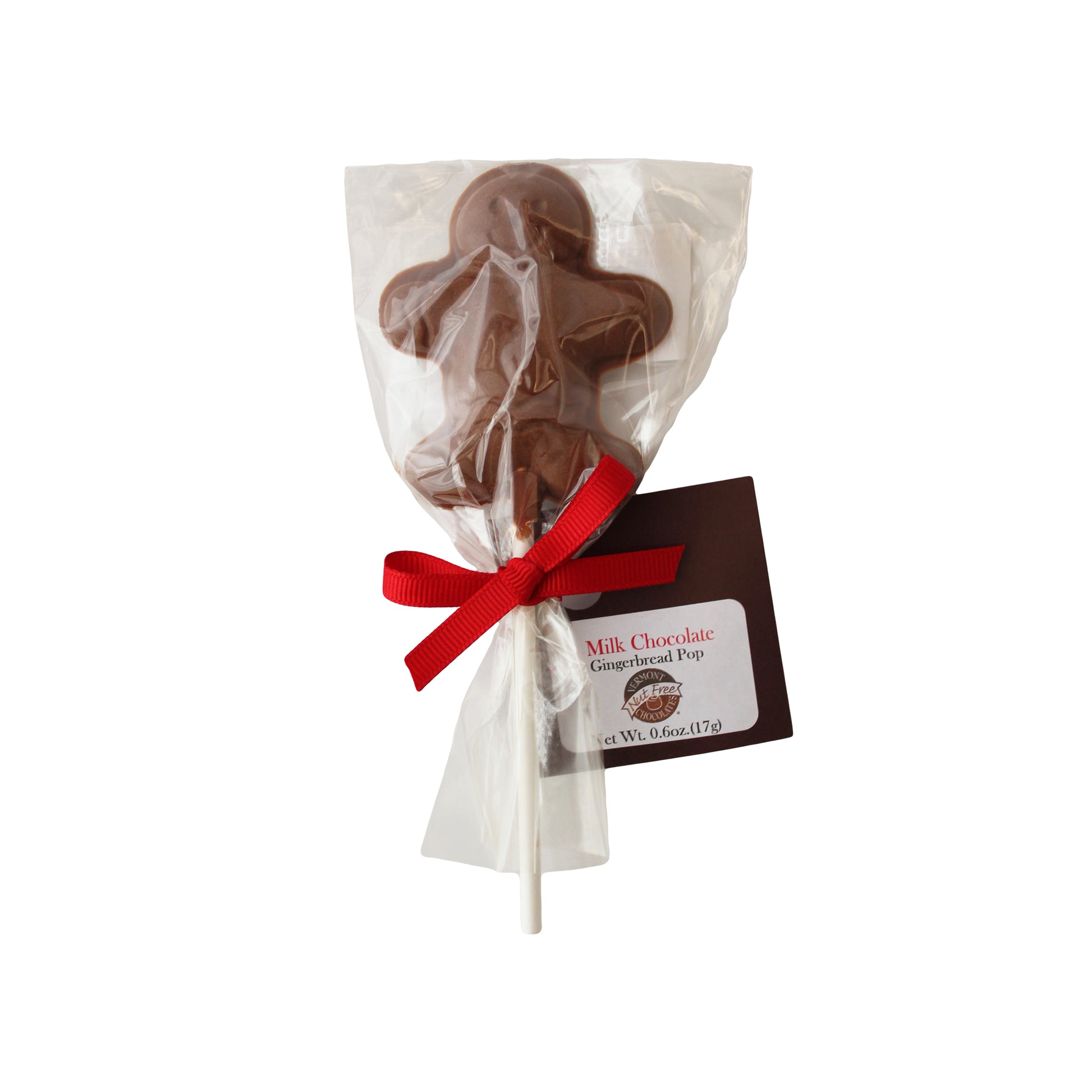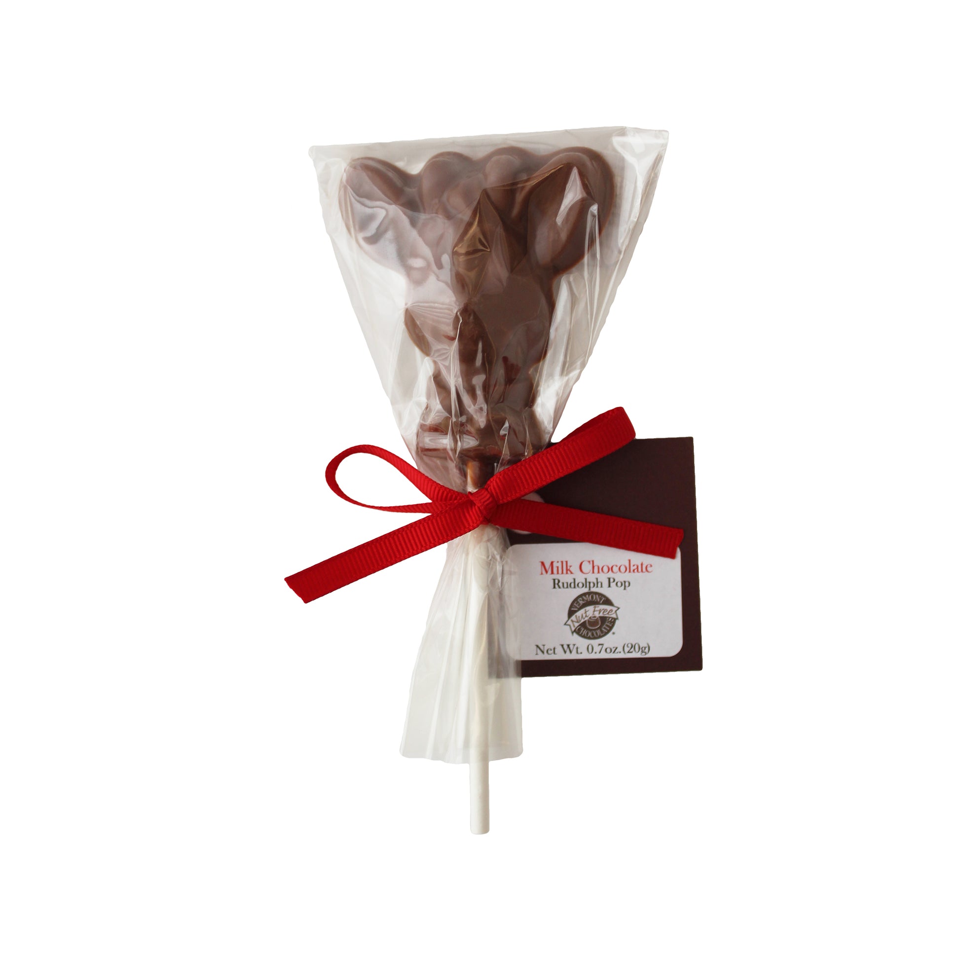 Choose from these solid chocolate shapes on a stick: Gingerbread Man, Rudolph, Santa, or Snowman. Available in milk, dark, and white chocolate (0.64 oz - 0.96 oz).