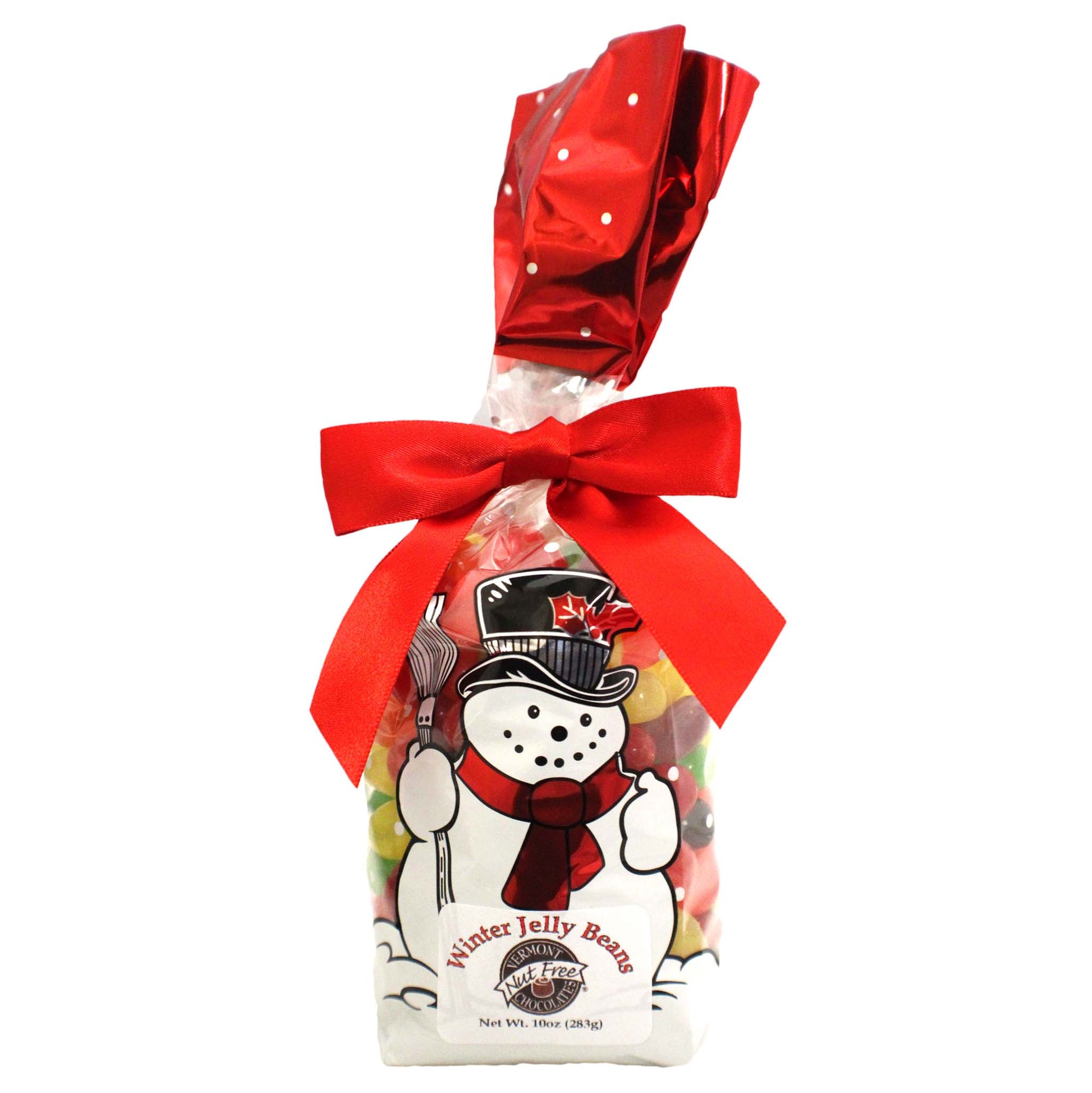 This cheerful snowman bag contains our delicious 'Fruit Medley' Jelly Beans! Makes a great stocking stuffer for those who prefer fruity flavors over chocolate. Jelly Bean flavors include orange, cherry, strawberry, lime, grape, and lemon (10 oz).